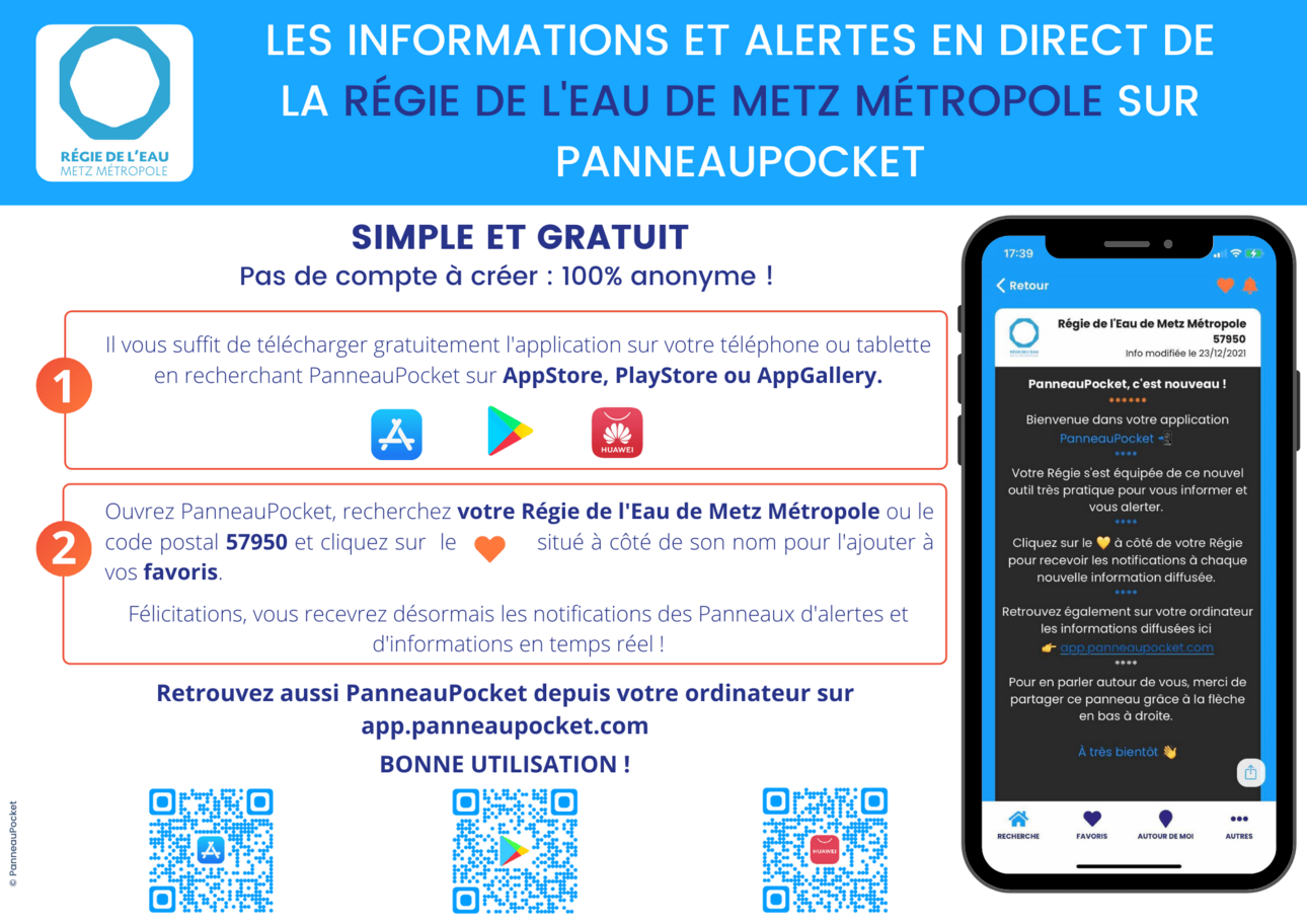 Depuis début janvier 2022, la Régie met à votre disposition un nouvel outil d’information gratuit : PanneauPocket.